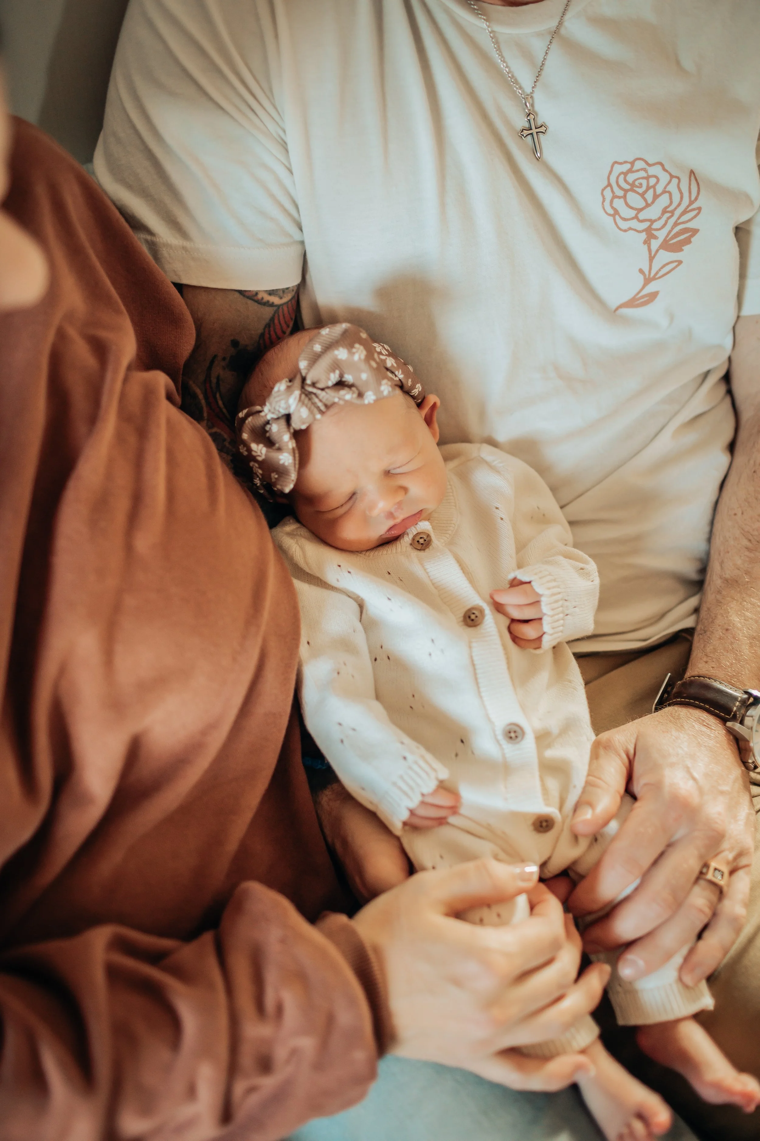I offer both in-home and studio sessions for lifestyle newborn. A newborn session includes up to two hours of shooting with baby, mom, dad, and siblings, and a minimum of 75 edited images.